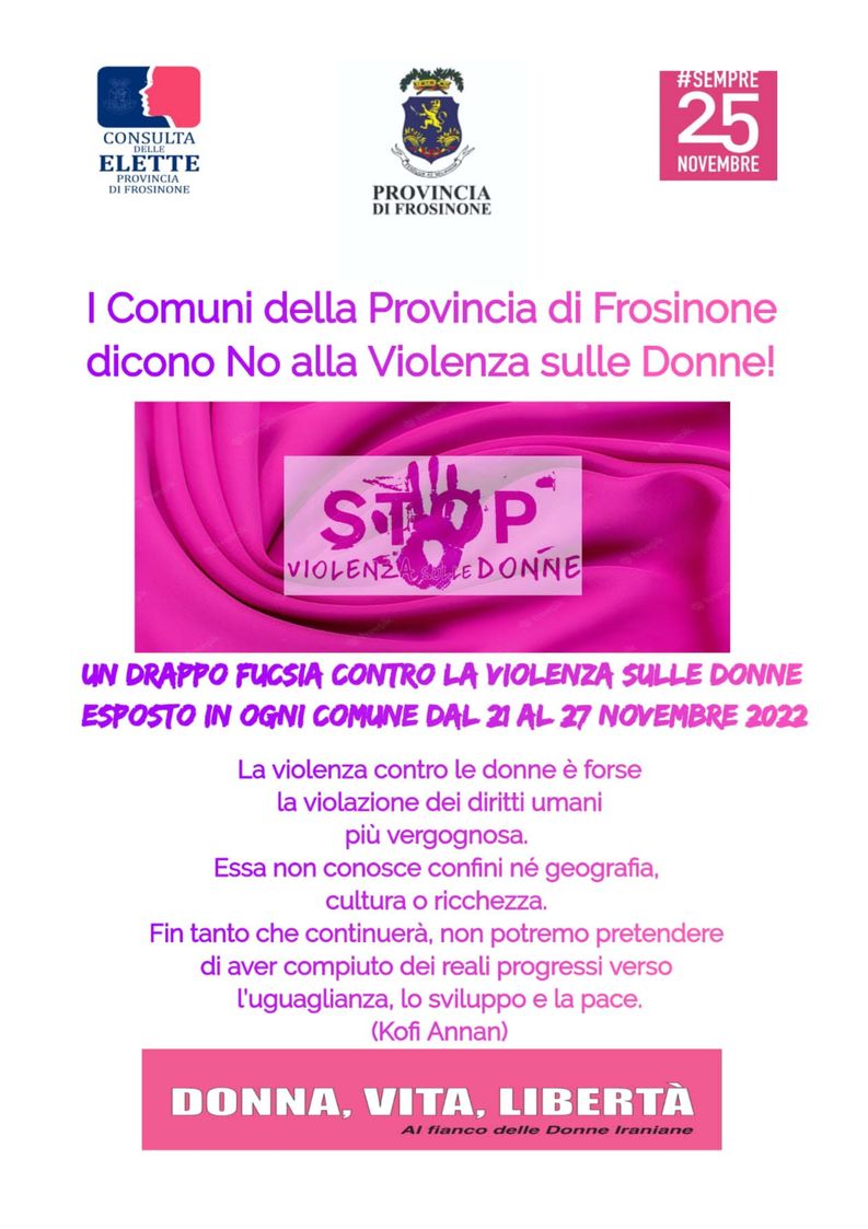 Un Drappo Fucsia contro la violenza sulle donne esposto in ogni comune dal 21 al 27 Novembre 2022.
